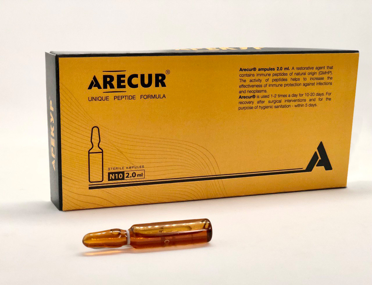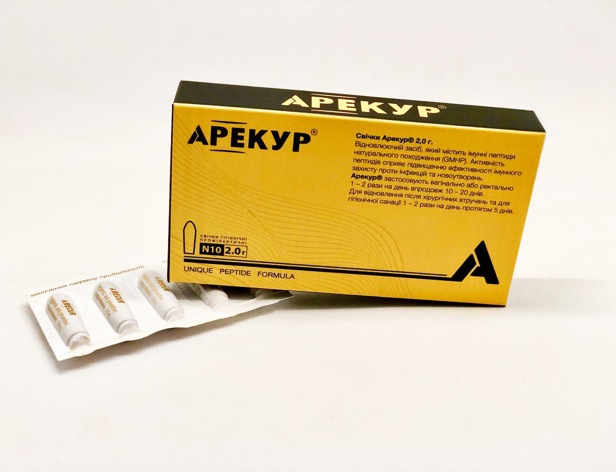 По 1 ампулі Арекур® в/м 1 раз на день вранці та по 1 супозиторію Арекур® 1 раз ввечері протягом 20 днів.